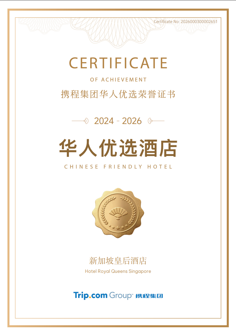 Hotel Royal Queens is committed to achieving service excellence and we are honoured to be awarded with 5 Star, 11 Gold and 13 Silver Awards. We will continuously strive to improve, so as to provide an even more hospitable experience for our guests.